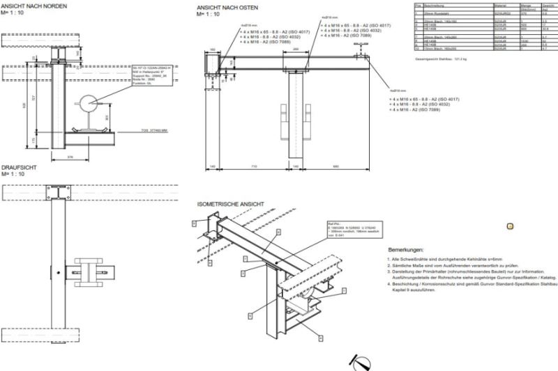 Egal ob es sich um Halterungszeichnungen, Primär- oder Sekundärstahlbau, um Zeichnungen von Apparaten handelt, erstellen wir mit höchster Genauigkeit die Pläne für Schweißungen und Verschraubungen.