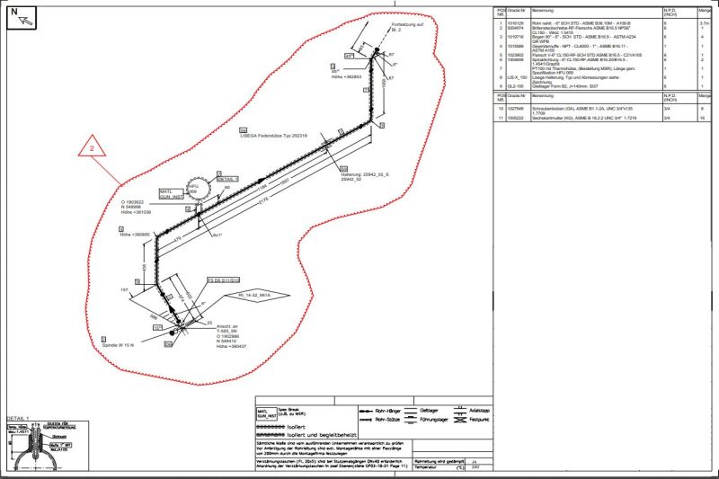 Auf Basis des erstellten Modells werden Isometrien generiert. Diese beinhalten alle Informationen, die zur Rohrleitusvorfertigung sowie für die Vorort-Montage notwendig sind. Natürlich inkl. Stücklisten !